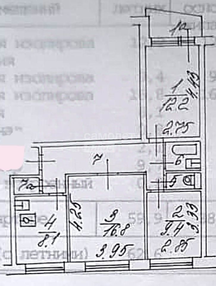 -Общая площадь 59,9кв м