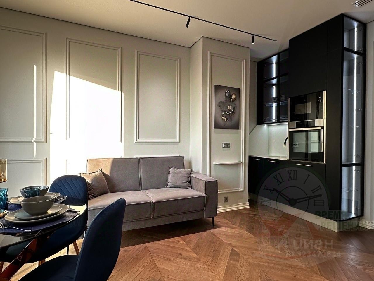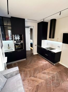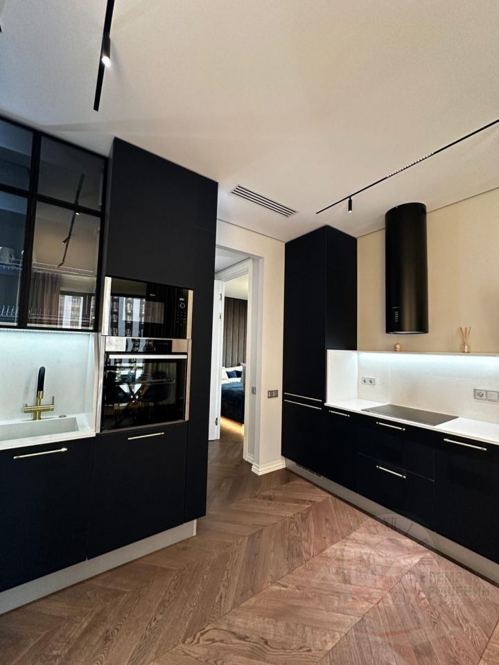 Кухня-гостинная 17,3 кв.м., укомплектована всем необходимым для вашего комфорта. Функциональная кухня со встроенной техникой фирмы NEFF (Духовой шкаф, варочная панель, вытяжка, посудомойка, встроенный холодильник, микроволновая печь). Также на кухне установлен измельчитель и фильтр для питьевой воды. Датчики протечки в мокрых точках.