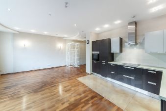 Квартира продается со встроенной мебелью: несколько объемных шкафов создают много вариантов организации хранения, кухонный гарнитур ведущего европейского бренда укомплектован качественной бытовой техникой.