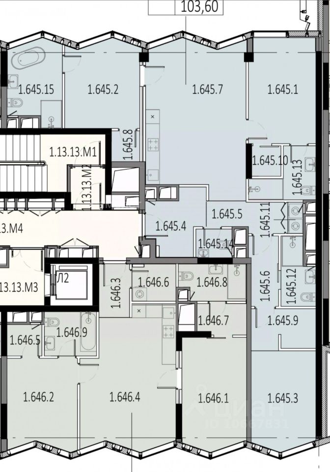 1) мастер-спальня (13м2 жилая, 8м2 санузел с панорамными окнами в пол, 2м2 гардеробная);