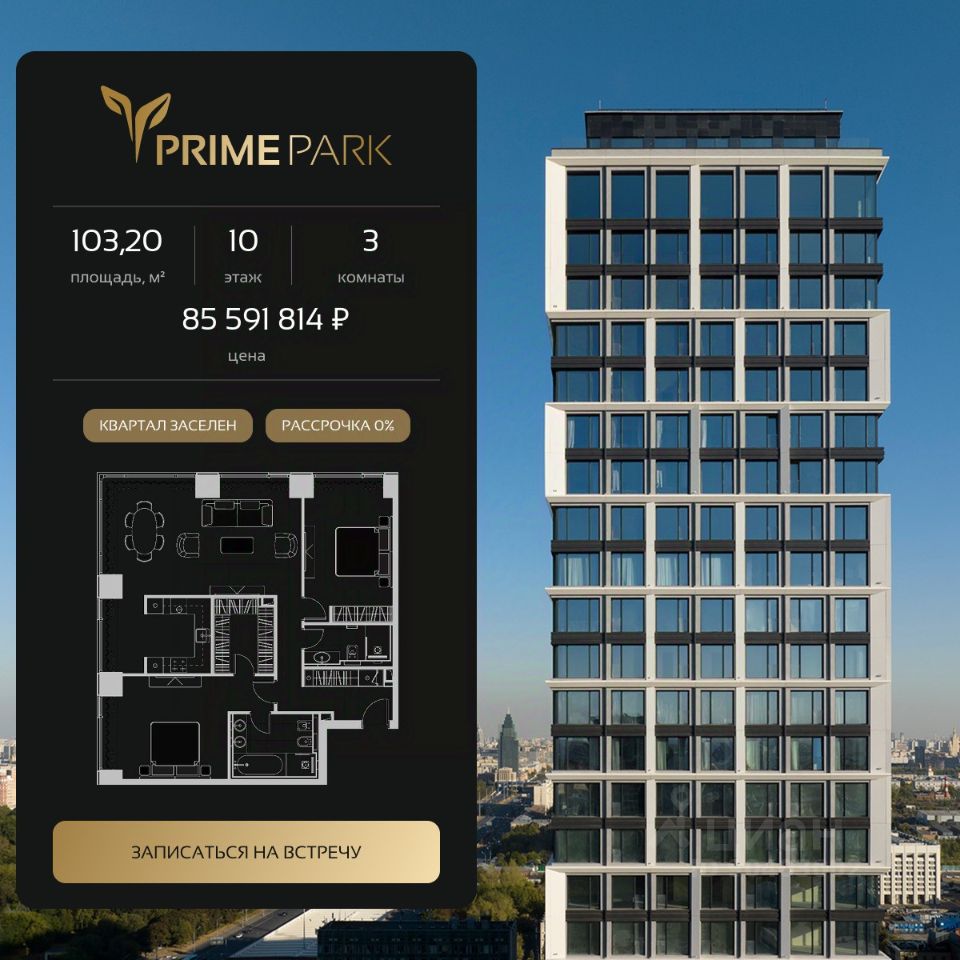 Жилой квартал Prime Park воплощает все преимущества premium-living. Престижная локация на Ленинградском проспекте, 37: - 5 мин. от Тверской улицы, Патриарших прудов и Белой площади, - 20 мин. до аэропорта "Шереметьево" или "Москва-Сити", - 4 парка — Ходынское поле, Петровский и Чапаевский парки, Березовая роща, - 4 станции метро — "ЦСКА", "Аэропорт", "Динамо" и "Петровский парк". Многократный победитель премий European Property Awards и Urban Awards, а также на протяжении пяти лет остается самым продаваемым проектом в своем сегменте. Premium-living Консьержи предугадывают желания резидентов и берут на себя выполнение практически любых бытовых задач. В квартале также есть парк-рейнджер и охрана. Для дополнительного удобства в МОПах предусмотрены почтовые комнаты, колясочные и комнаты для мытья лап домашних питомцев, комната для хранения интернет-заказов. Наличие сервисного входа для персонала позволяет разделить трафик, сохраняя приватную атмосферу в лобби. Резидентам нужно открыть только одну дверь, чтобы оказаться дома: valet-парковщики открывают дверь автомобиля и отвозят его на подземный паркинг, беллмены открывают двери при входе в башню и помогают донести вещи до квартиры, интеллектуальная система обеспечивает бесконтактный вызов лифта. Развитая инфраструктура Близость к центру Москвы, рядом крупнейший ТЦ "Авиапарк", ВТБ Арена, Мегаспорт, ВЭБ Арена, в окружении красивейших парков, включая ультрасовременный Ходынский парк площадью 25 га с панорамными качелями, набережной, фонтанами, детскими и спортивными площадками. На территории квартала предусмотрены приватный фитнес-центр с 25-метровым бассейном и спа, подземный паркинг с кладовыми, местами для хранения велосипедов, электрозарядками и детейлинг-центром для обслуживания автомобилей. На первых этажах башен расположатся кафе и рестораны, цветочный магазин, аптека, салон красоты, премиальный супермаркет и бытовые сервисы. Частный парк Общее парковое пространство квартала — 5,5 га, из них 3 га отведено под частный парк эксклюзивно для резидентов. Большой фонтан, аллеи для прогулок, крупномерные деревья, арт-инсталляции, водные глади, детские площадки и воркаут-зона создают гармоничное сочетание жизни на природе со всеми преимуществами мегаполиса. Уникальная квартирография Более 80 вариантов планировочных решений от однокомнатных квартир до двухуровневых дуплексов и пентхаусов. Панорамные окна, высокие потолки, мастер-спальни, балконы и террасы создают особенный комфорт и уют. Авторская архитектура и дизайн Четыре башни сданы, ключи выдаются в день сделки, 2 башни на этапе строительства, сдача в 2023 и 2024 гг. Уникальный архитектурный ансамбль и ландшафтный дизайн, благородные и ценные материалы в оформлении лобби, предметы искусства, арт-объекты и элементы декора, выполненные на заказ специально для Prime Park, становятся отражением яркой индивидуальности резидентов квартала.