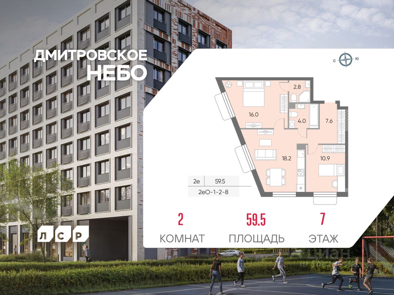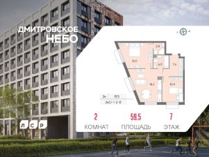 Продается 2-комнатная квартира общей площадью 59.5 кв. метров на 7 этаже жилого комплекса Дмитровское небо. Комплекс возводится в Северном административном округе в районе Западное Дегунино в Ильменском проезде, в 5 минутах ходьбы от метро "Верхние Лихоборы", а автомобилисты могут за пару минут выехать на Ильменский проезд и по нему добраться до Дмитровского шоссе.
