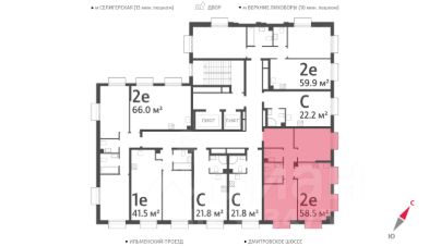Продается 2-комнатная квартира общей площадью 58.45 кв. метров на 17 этаже жилого комплекса Дмитровское небо. Комплекс возводится в Северном административном округе в районе Западное Дегунино в Ильменском проезде, в 5 минутах ходьбы от метро "Верхние Лихоборы", а автомобилисты могут за пару минут выехать на Ильменский проезд и по нему добраться до Дмитровского шоссе.