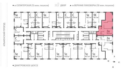 Продается 2-комнатная квартира общей площадью 54.7 кв. метров на 32 этаже жилого комплекса Дмитровское небо. Комплекс возводится в Северном административном округе в районе Западное Дегунино в Ильменском проезде, в 5 минутах ходьбы от метро "Верхние Лихоборы", а автомобилисты могут за пару минут выехать на Ильменский проезд и по нему добраться до Дмитровского шоссе.