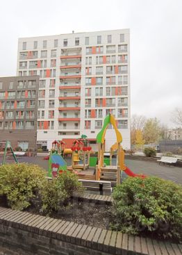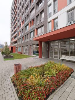 Окна квартиры - во двор, на детские игровые и спортивную площадки.