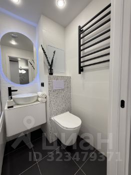 Совмещенный санузел оснащен качественной сантехникой, установлен электрический полотенцесушитель, зеркало с бесконтактной подсветкой, стены и полы выложены плиткой.