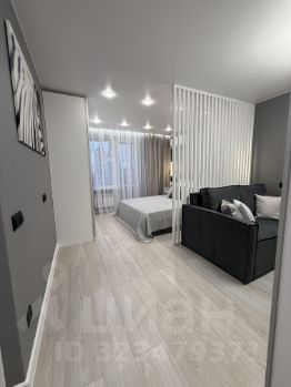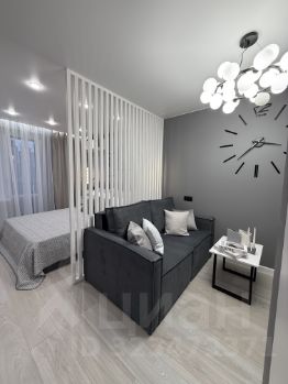 20-ти метровая комната разделена декоративной перегородкой на 2 зоны спальню и гостиную.