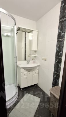 Санузел совмещённый, в идеальном состоянии, с душевой кабиной и современной сантехникой.