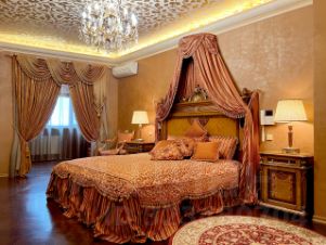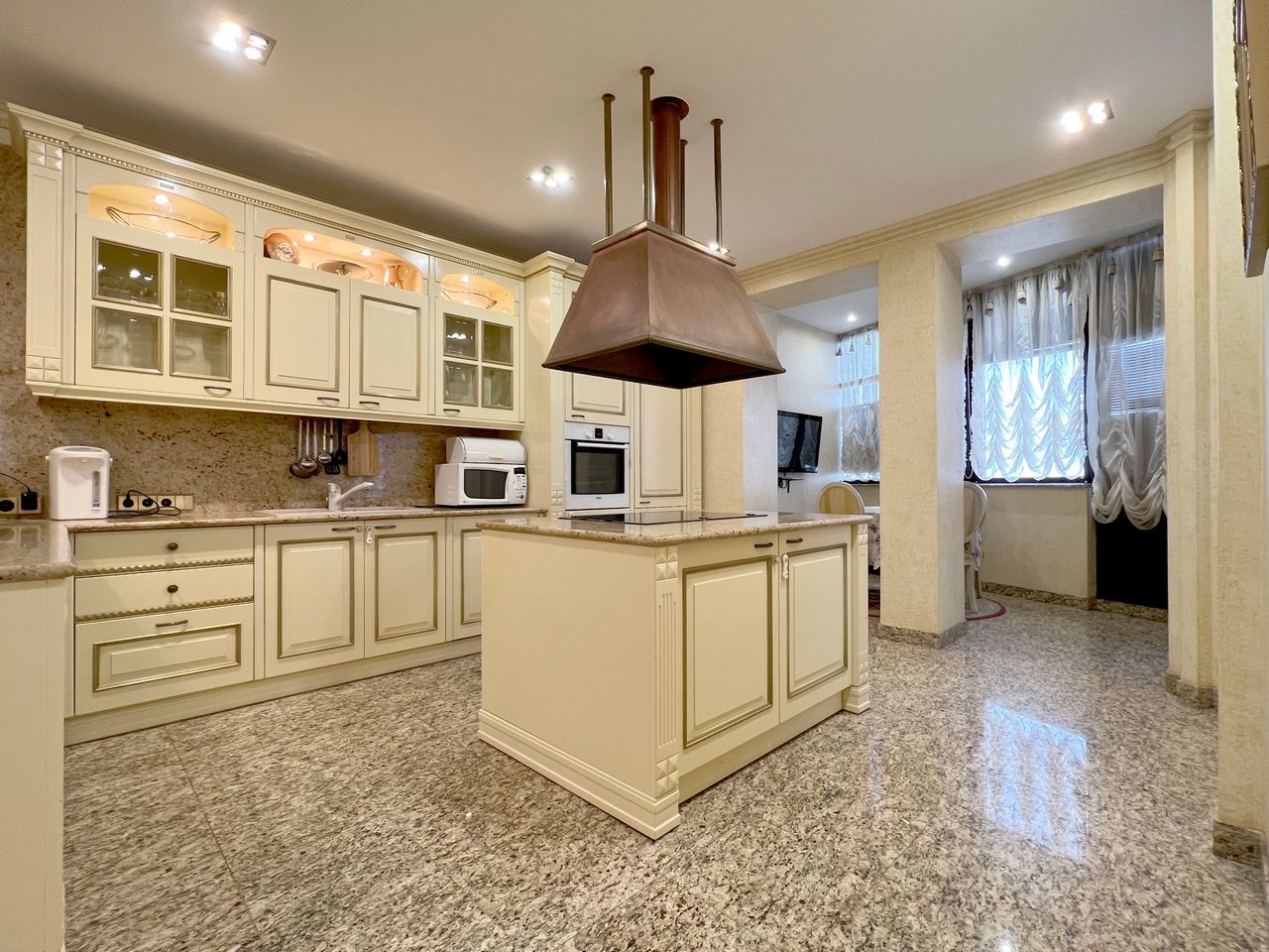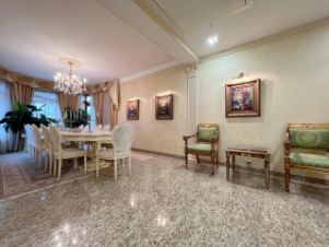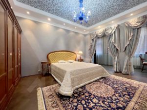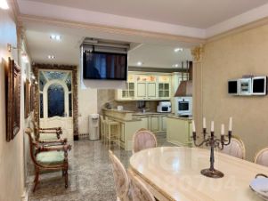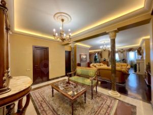 Квартира полностью меблирована эксклюзивной мебелью и укомплектована требуемой б/техникой премиум-класса, 7-и комнатная (6 спален), общей площадью 400 кв.м., расположена на 23/23 монолитно-кирпичного дома 2002 г.п. с п/паркингом, высота потолка 3 м.
