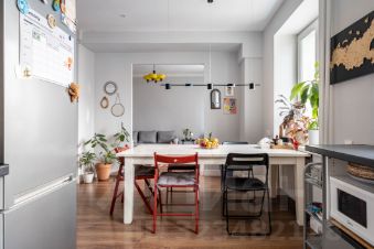 - все делалось для себя, поэтому сделаны грамотные и очень удобные решения: стены в детской комнате со звукоизоляцией, в спальне оборудованная и вместительная гардеробная зона!