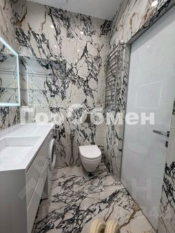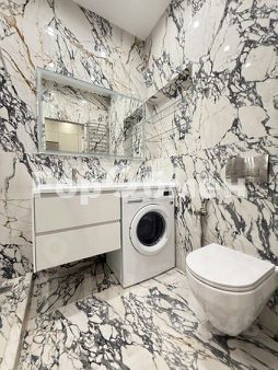 В просторной ванной комнате испанская плитка из премиальной коллекции, зеркало с подсветкой, электрический полотенцесушитель, тёплые полы, тропический и гигиенический душ.