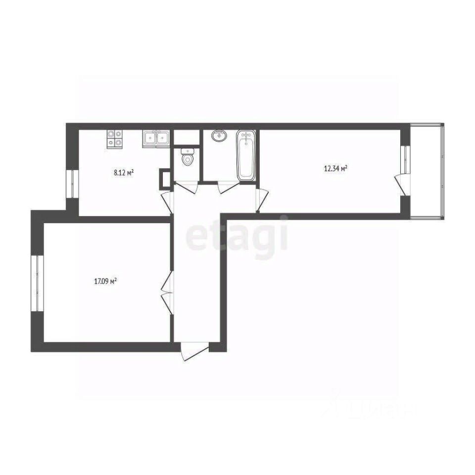 Общая площадь квартиры составляет 51,4 квадратных метров. Две изолированные комнаты и кухня. Раздельный санузел. Высота потолков  2,7 метра. Большие вместительные антресоли. Лоджия как отдельная комната.