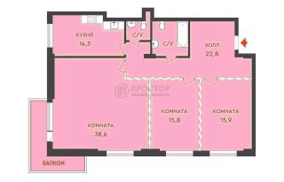 Продается видовая трехкомнатная квартира в ЖК бизнес-класса "Изумруд".