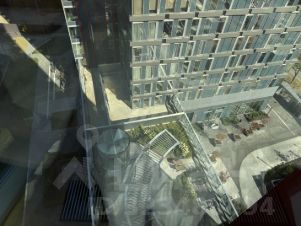 Окна выходят во двор на зеленую зону.