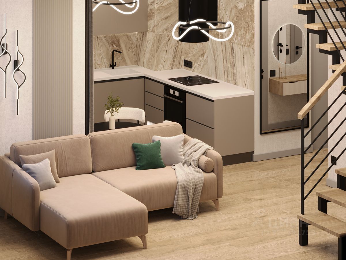 Удачная планировка: спальня и просторная кухня-гостиная зонированы