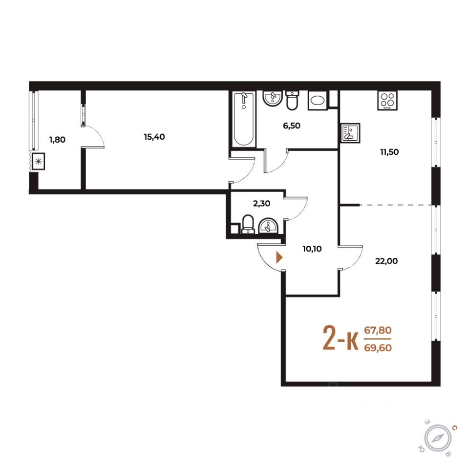 Продается 2-комн. квартира от застройщика в ЖК бизнес-класса "Новое Летово". Общая площадь: 69.6 кв.м., жилая: 37.4 кв.м., площадь кухни: 11.5 кв.м. Этаж: 2, квартира 4.