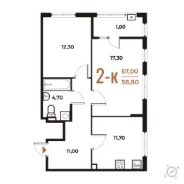 Продается 2-комн. квартира от застройщика в ЖК бизнес-класса "Новое Летово". Общая площадь: 58.8 кв.м., жилая: 29.6 кв.м., площадь кухни: 11.7 кв.м. Этаж: 2, квартира 27.