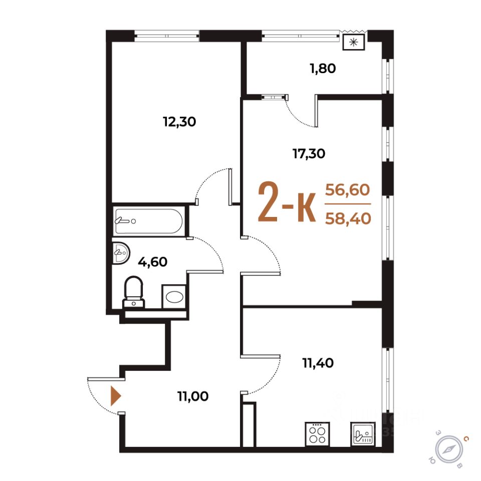 Продается 2-комн. квартира от застройщика в ЖК бизнес-класса "Новое Летово". Общая площадь: 58.4 кв.м., жилая: 29.6 кв.м., площадь кухни: 11.4 кв.м. Этаж: 3, квартира 31.