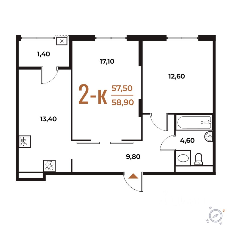 Продается 2-комн. квартира от застройщика в ЖК бизнес-класса "Новое Летово". Общая площадь: 58.9 кв.м., жилая: 29.7 кв.м., площадь кухни: 13.4 кв.м. Этаж: 4, квартира 34.