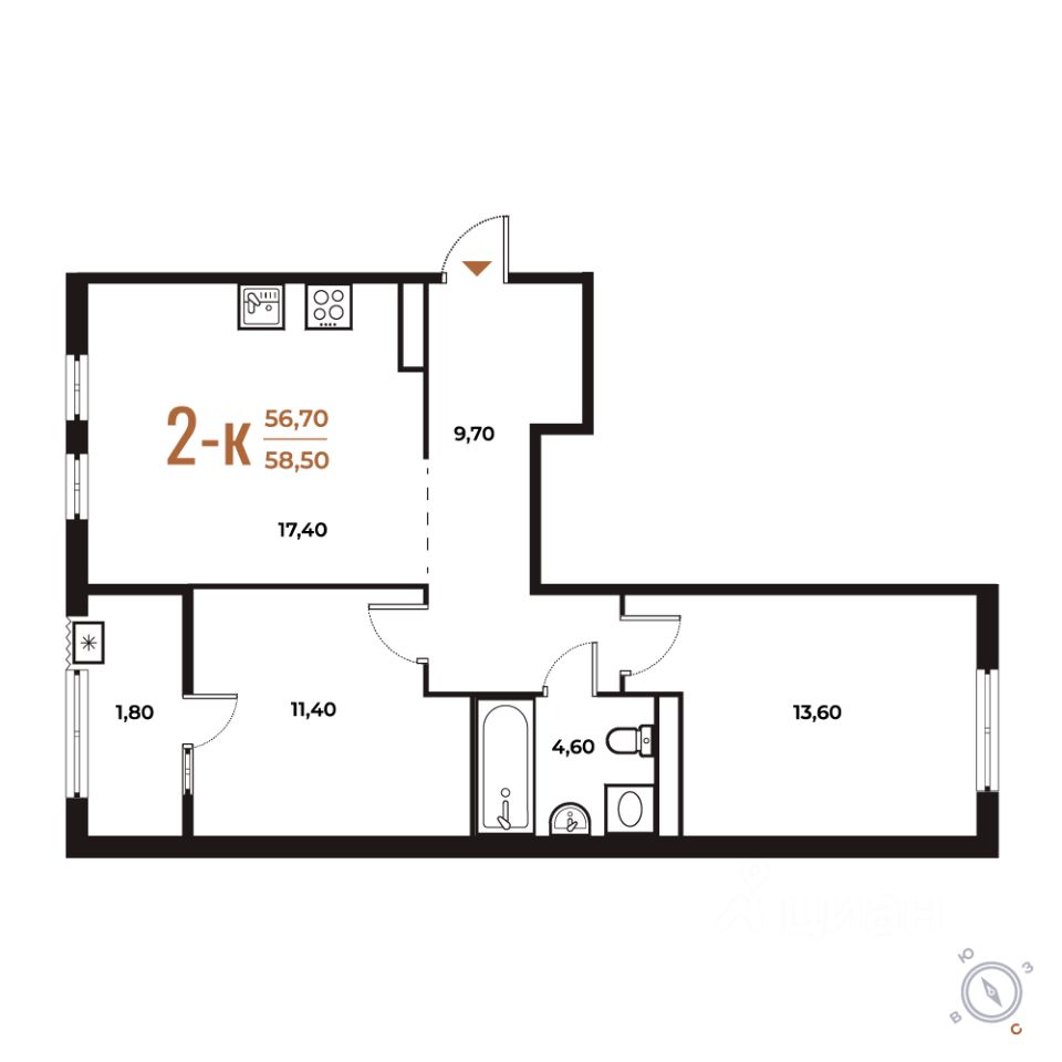 Продается 2-комн. квартира от застройщика в ЖК бизнес-класса "Новое Летово". Общая площадь: 58.5 кв.м., жилая: 25.0 кв.м., площадь кухни: 17.4 кв.м. Этаж: 4, квартира 120.