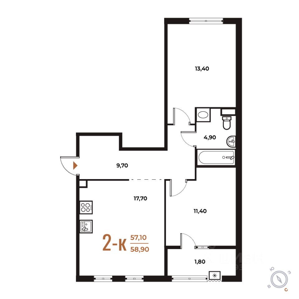 Продается 2-комн. квартира от застройщика в ЖК бизнес-класса "Новое Летово". Общая площадь: 58.9 кв.м., жилая: 24.8 кв.м., площадь кухни: 17.7 кв.м. Этаж: 2, квартира 166.