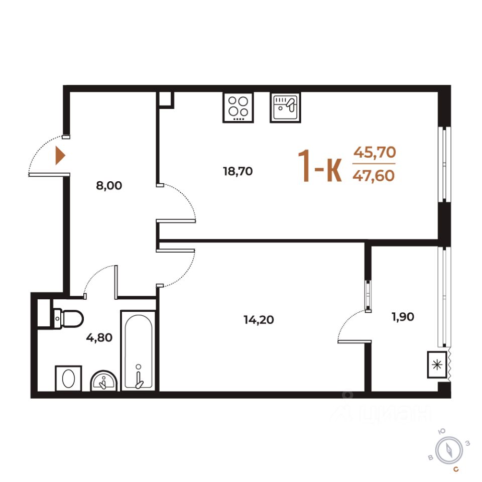 Продается 1-комн. квартира от застройщика в ЖК бизнес-класса "Новое Летово". Общая площадь: 47.6 кв.м., жилая: 14.2 кв.м., площадь кухни: 18.7 кв.м. Этаж: 2, квартира 435.