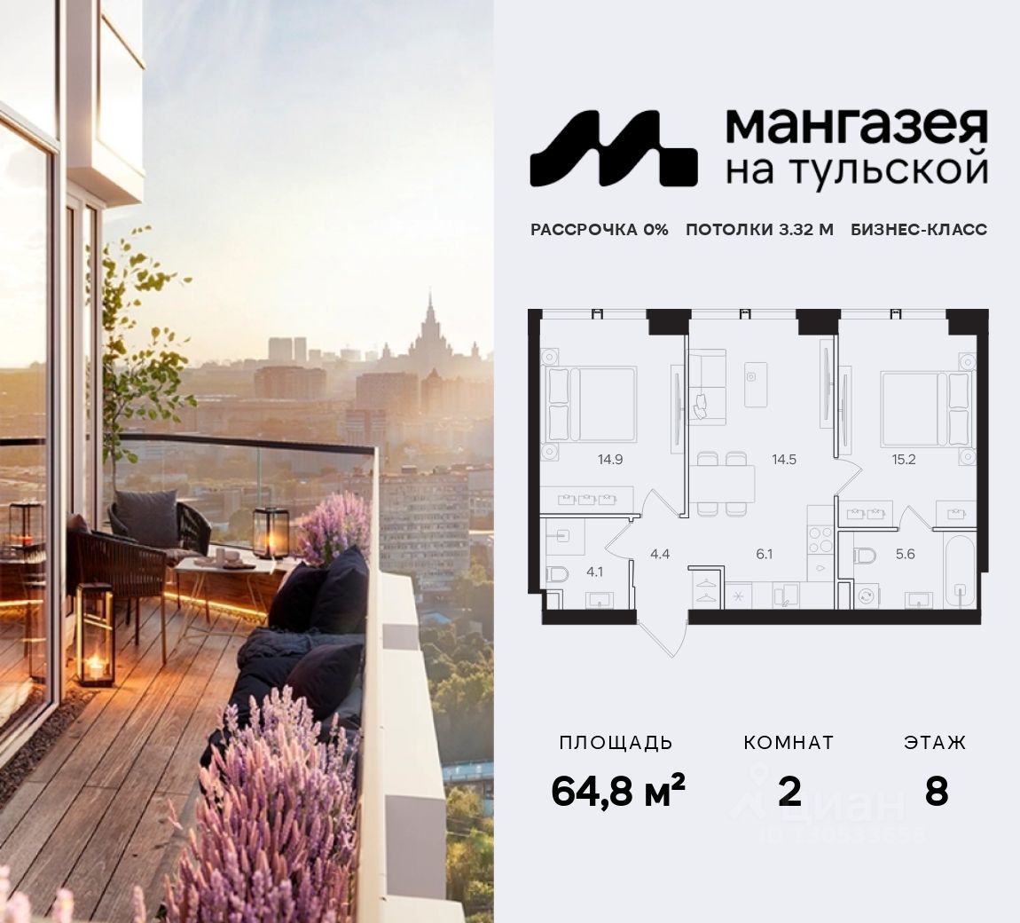Мангазея на Тульской - премиальные жилые небоскребы в Даниловском районе, в 10 минутах от Садового кольца. Проект состоит из 42-этажной Бронзовой башни и 41-этажной Серебряной. Рядом - набережная Москвы-реки, Даниловский рынок, музеи и галереи, престижные школы и вузы.