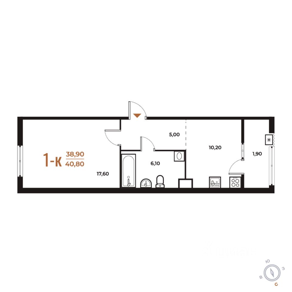 Продается 1-комн. квартира от застройщика в ЖК бизнес-класса "Новое Летово". Общая площадь: 40.8 кв.м., жилая: 17.6 кв.м., площадь кухни: 10.2 кв.м. Этаж: 2, квартира 535.