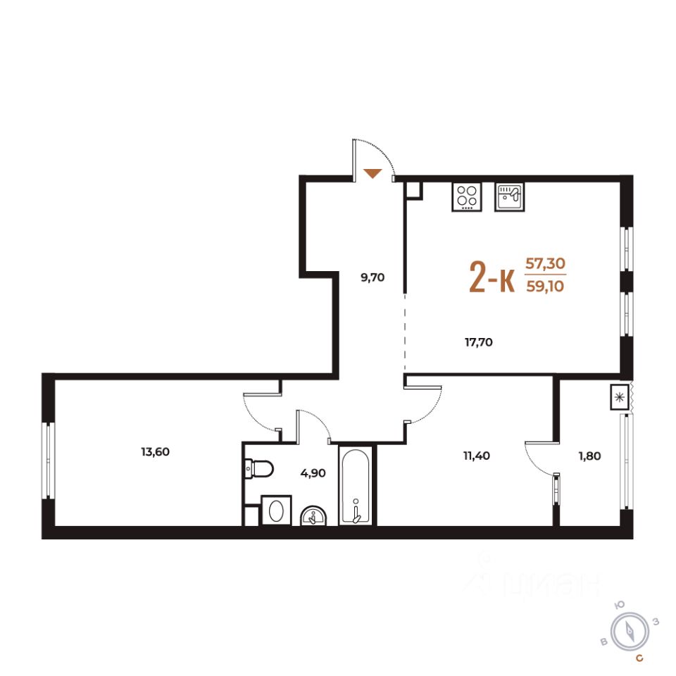 Продается 2-комн. квартира от застройщика в ЖК бизнес-класса "Новое Летово". Общая площадь: 59.1 кв.м., жилая: 25.0 кв.м., площадь кухни: 17.7 кв.м. Этаж: 2, квартира 565.