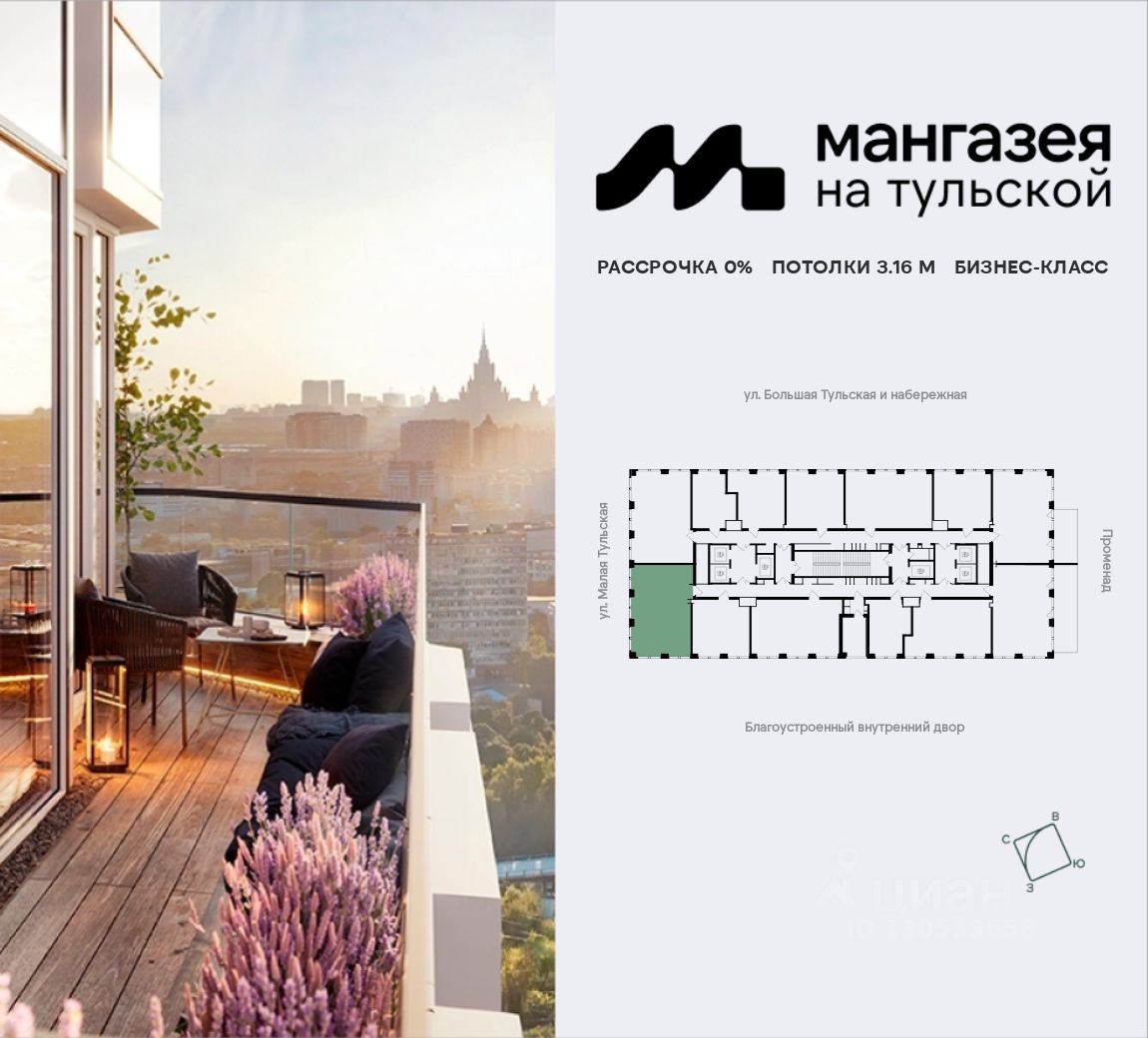 Мангазея на Тульской - премиальные жилые небоскребы в Даниловском районе, в 10 минутах от Садового кольца. Проект состоит из 42-этажной Бронзовой башни и 41-этажной Серебряной. Рядом - набережная Москвы-реки, Даниловский рынок, музеи и галереи, престижные школы и вузы.