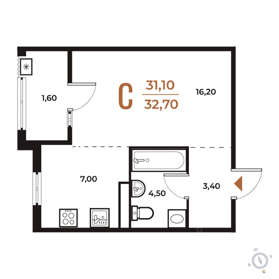 Продается студия от застройщика в ЖК бизнес-класса "Новое Летово". Общая площадь: 32.7 кв.м., жилая: 16.2 кв.м., площадь кухни: 7.0 кв.м. Этаж: 7, квартира 645.