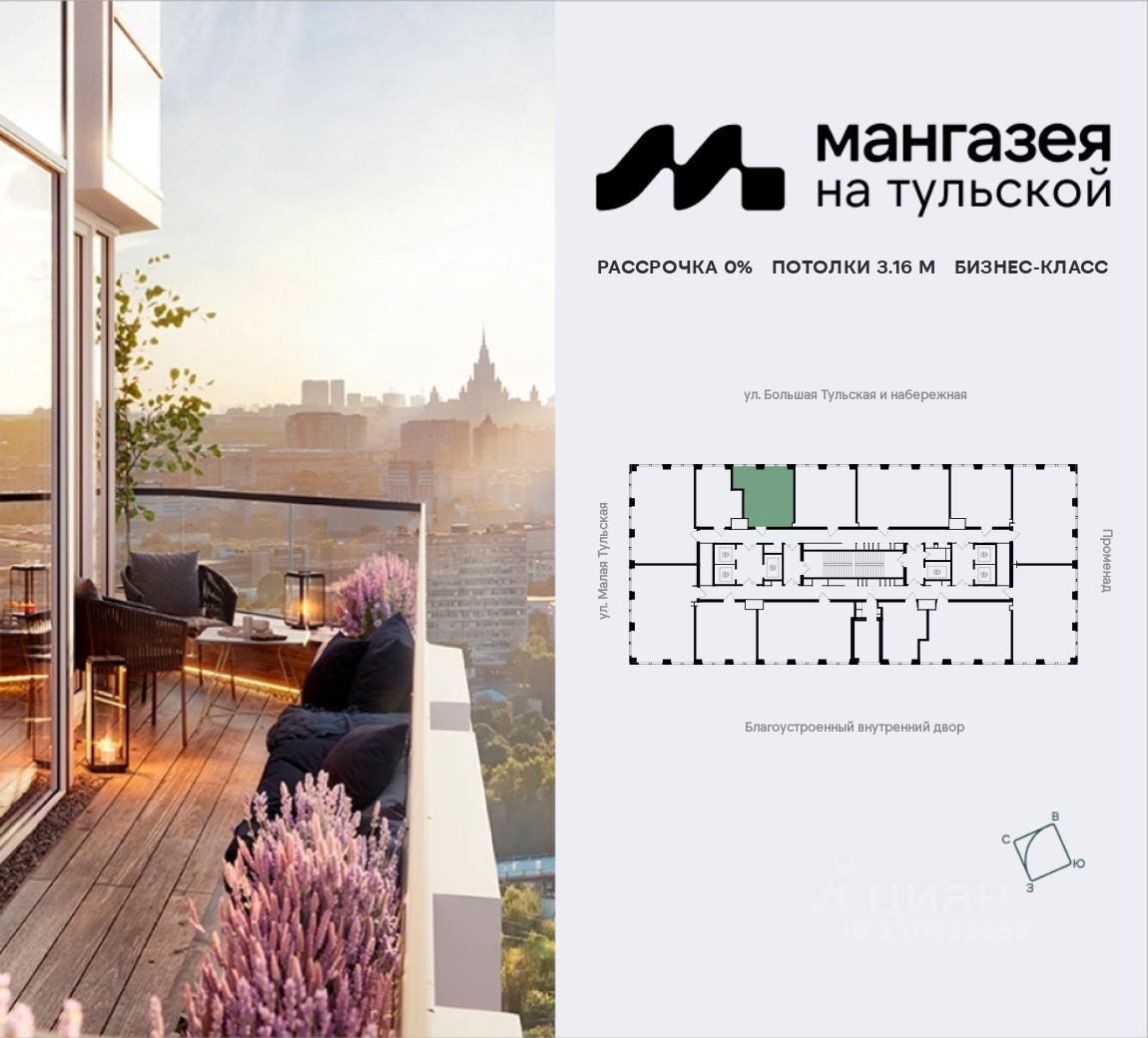 Мангазея на Тульской - премиальные жилые небоскребы в Даниловском районе, в 10 минутах от Садового кольца. Проект состоит из 42-этажной Бронзовой башни и 41-этажной Серебряной. Рядом - набережная Москвы-реки, Даниловский рынок, музеи и галереи, престижные школы и вузы.