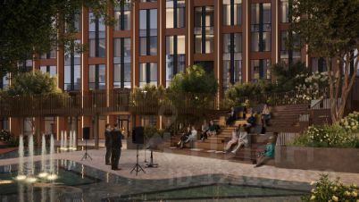 Приватное трехуровневое пространство с всесезонным озеленением, амфитеатром и лаунж-зонами, уличным коворкингом, плейхабом и скалодромом. На придомовой территории расположится уникальный для Москвы объект - скала из натурального камня с водопадом.