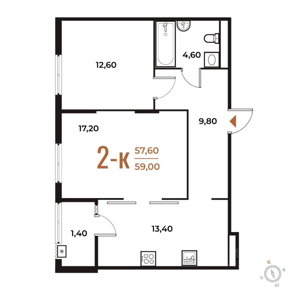 Продается 2-комн. квартира от застройщика в ЖК бизнес-класса "Новое Летово". Общая площадь: 59.0 кв.м., жилая: 29.8 кв.м., площадь кухни: 13.4 кв.м. Этаж: 4, квартира 310.
