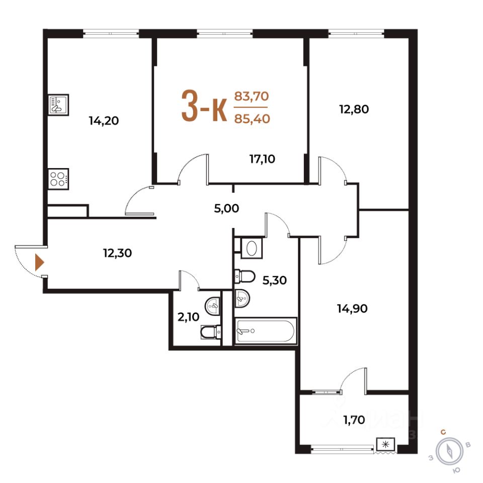 Продается 3-комн. квартира от застройщика в ЖК бизнес-класса "Новое Летово". Общая площадь: 85.4 кв.м., жилая: 44.8 кв.м., площадь кухни: 14.2 кв.м. Этаж: 4, квартира 312.