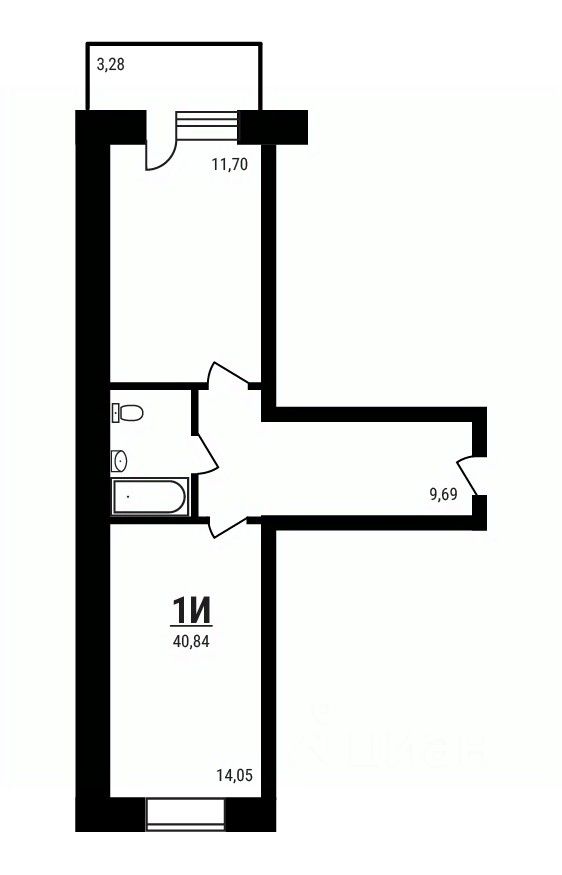 Общая площадь40,84 м²