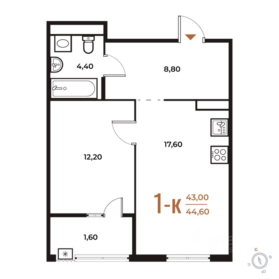 Продается 1-комн. квартира от застройщика в ЖК бизнес-класса "Новое Летово". Общая площадь: 44.6 кв.м., жилая: 12.2 кв.м., площадь кухни: 17.6 кв.м. Этаж: 6, квартира 367.