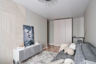 В спальне организована гардеробная, вторая комната свободного назначения (детская, кабинет, гостевая).