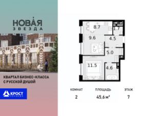 Продаётся 2-к квартира 45.6 кв.м. на 7-м этаже 22 этажного дома, корпус 6 - Резиденция "Хабаровск". Без отделки.