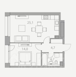 Планировочное решение: просторная кухня-гостиная, уютная спальня, ванная комната, просторная прихожая. При высоте потолков более 3м в квартире ощущается дополнительный объем пространства.