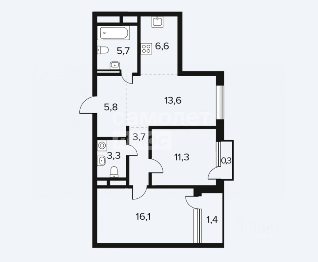 Просторная и светлая квартира 3ккв(Е) 67,80 м² (с учётом лоджии и балкона), без ремонта, на 3 этаже монолитного дома.