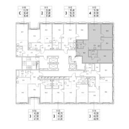 Общая площадь 81,9 кв м, 25 этаж 30 этажного дома, 7 подьезд. Подьезды имеют разную этажность, соседний подьезд 8 имеет 14 этажей, обзор не закрывает. Квартира имеет прекрасные видовые характеристики.