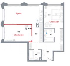 Предлагается новый вариант планировки с кухней-столовой, имеющей 5 окон, 2 из которых выходят на Никулинскую улицу в сторону центра города, позволят Вам любоваться салютом с Красной Площади и Парка Победы, 3 других окна выходят на улицу Озерная с прекрасным видом на парки и пруды вдоль реки Очаковки.
