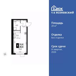 Продаётся квартира-студия номер 399 общей площадью 28 кв.м. на 12-м этаже 18 этажного здания. Без отделки.