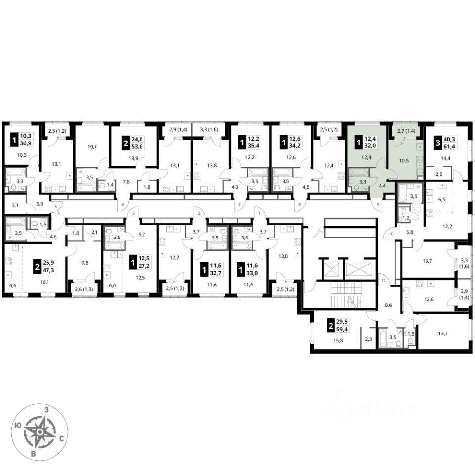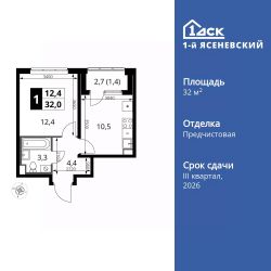 Продаётся 1-к квартира номер 159 общей площадью 32 кв.м. на 2-м этаже 18 этажного здания. Отделка Whitebox.