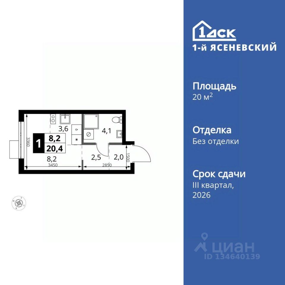 Продаётся квартира-студия номер 710 общей площадью 20.4 кв.м. на 12-м этаже 16 этажного здания. Без отделки.