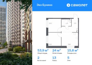 Строим кварталы для жизни с заботой о будущем. Предлагается 2-комнатная квартира комфорт-класса 53,87 кв.м в корпусе 13 на 5 этаже, в ЖК "Эко Бунино"