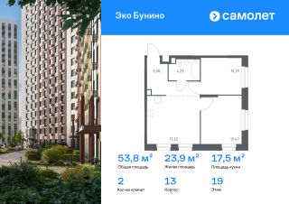 Строим кварталы для жизни с заботой о будущем. Предлагается 2-комнатная квартира комфорт-класса 53,75 кв.м в корпусе 13 на 19 этаже, в ЖК "Эко Бунино"