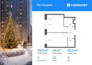 Строим кварталы для жизни с заботой о будущем. Предлагается 1-комнатная квартира комфорт-класса 39,56 кв.м в корпусе 13 на 4 этаже, в ЖК "Эко Бунино"