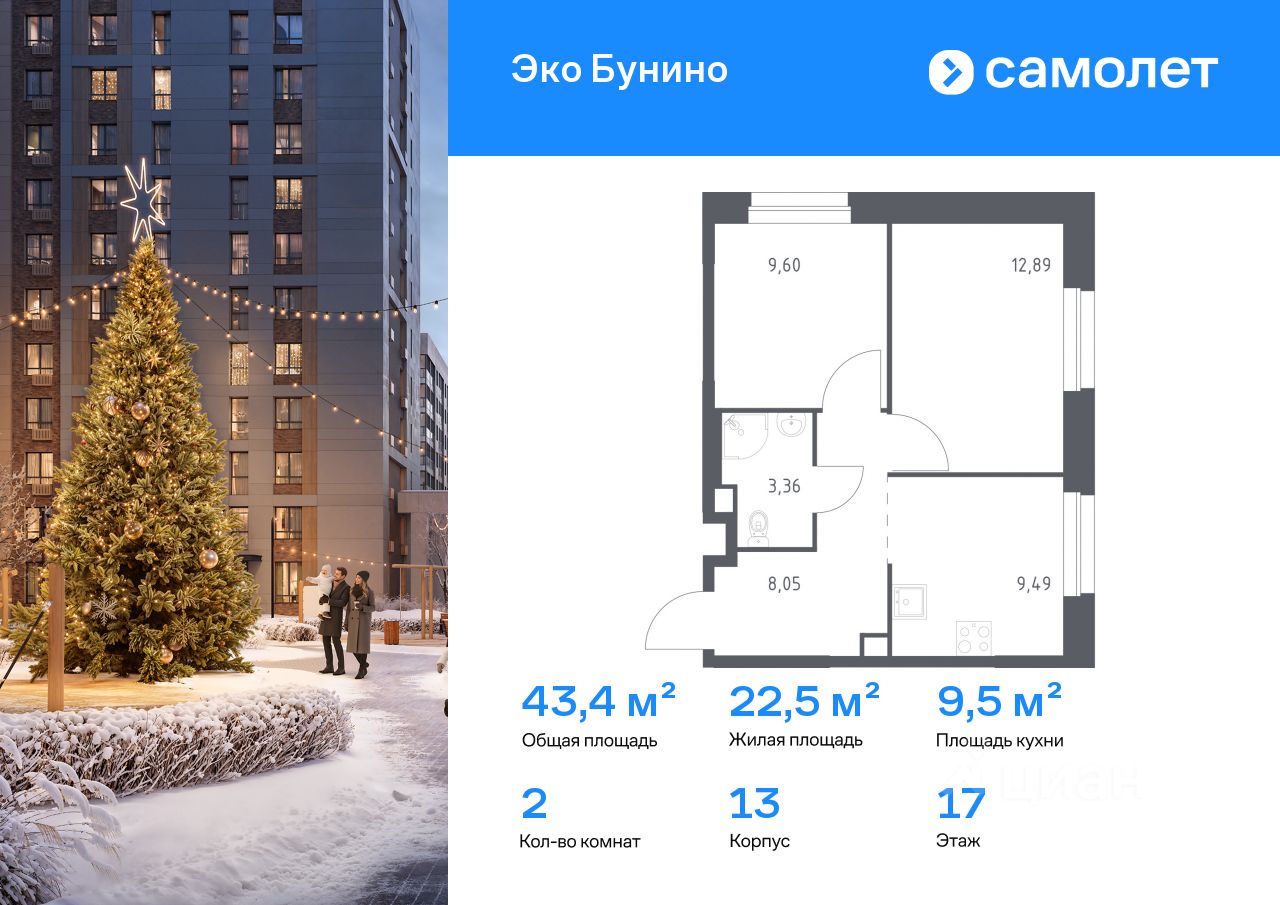 Строим кварталы для жизни с заботой о будущем. Предлагается 2-комнатная квартира комфорт-класса 43,39 кв.м в корпусе 13 на 17 этаже, в ЖК "Эко Бунино"